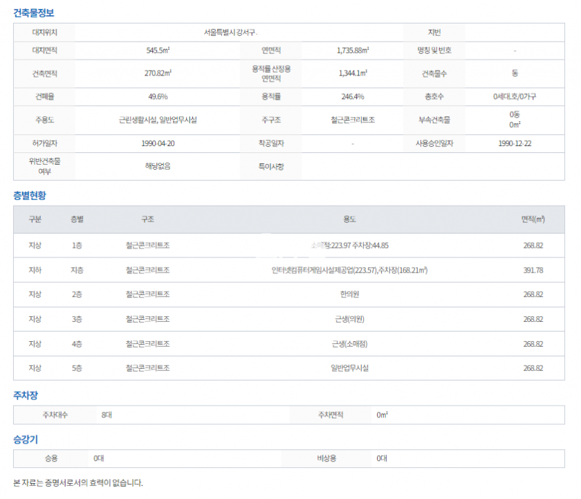 안녕하세요 강서구에 위치한 5층