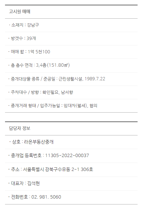 라온부동산중개는 독서실, 스터디카페, 숙박업 전문으로 취급하는