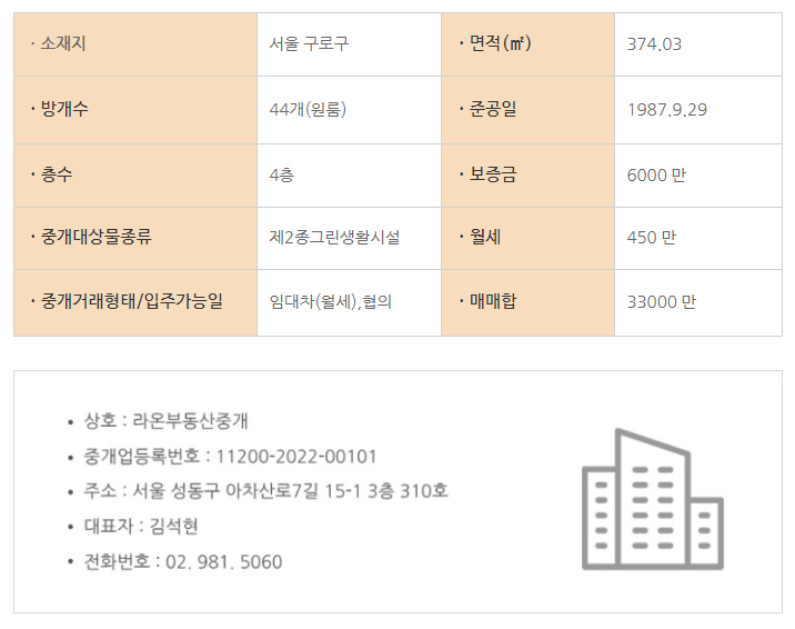 라온부동산중개는 독서실, 스터디카페, 숙박업 전문으로 취급하는
